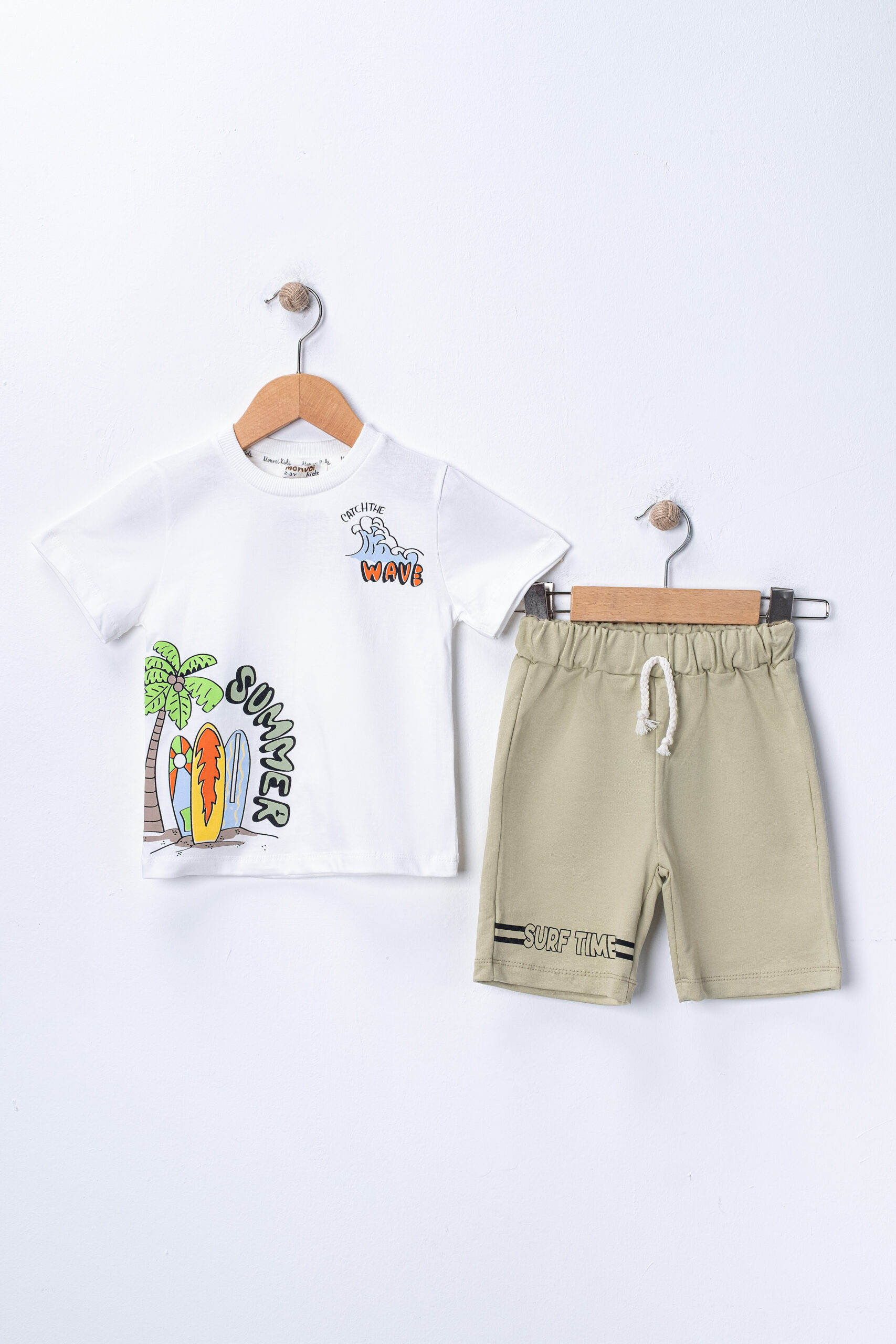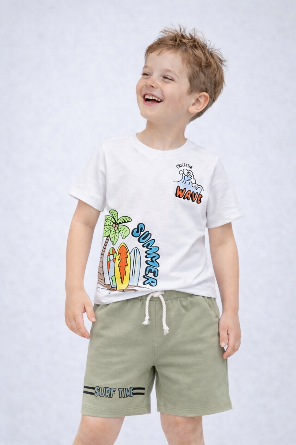 Καλοκαιρινό σετ για αγόρι με σχέδια, με βαμβακερό ύφασμα ιδανικό για παιχνίδι και καθημερινές δραστηριότητες.