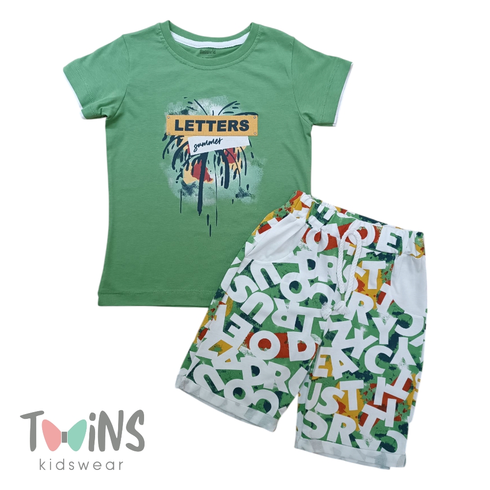Καλοκαιρινό σετ για αγόρι από άνετο βαμβακερό ύφασμα. Το σετ περιλαμβάνει κοντομάνικη μπλούζα με στάμπα και εμπριμέ σορτσάκι με τσέπες και λάστιχο στη μέση. Άνετή εφαρμογή.
